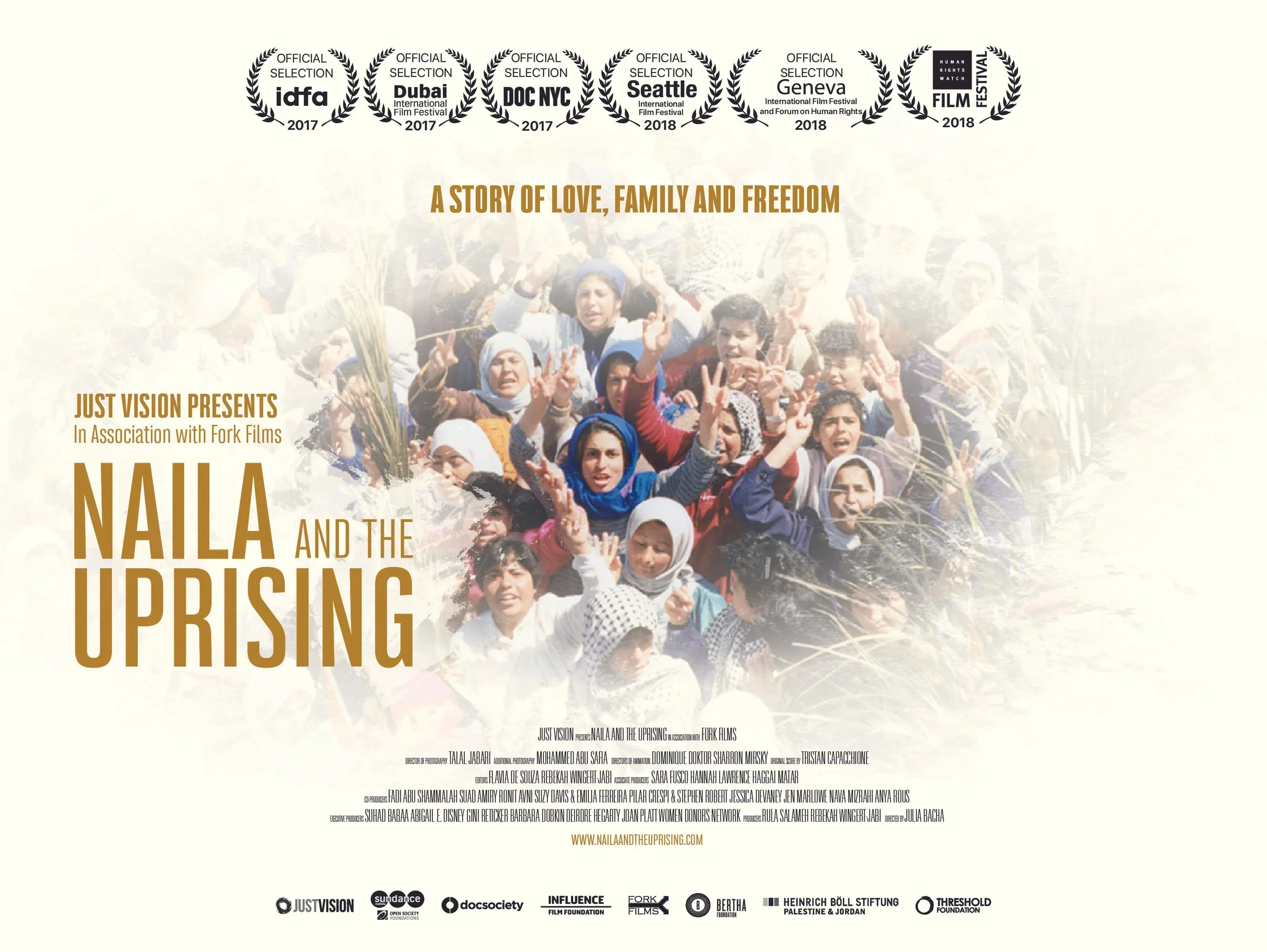 When a nation-wide uprising breaks out in 1987, a woman in Gaza must make a choice between love, family and freedom. Undaunted, she embraces all three, joining a clandestine network of women in a movement that forces the world to recognize the Palestinian right to self-determination for the first time. Directed by Julia Bacha, a Peabody award-winning filmmaker, Naila and the Uprising chronicles the remarkable journey of Naila Ayesh whose story weaves through the most vibrant, nonviolent mobilization in Palestinian history – the First Intifada in the late 1980s.
